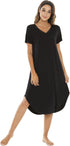 Women’s Nightgown, Viscose from Bamboo, V-Neck Short-Sleeve Nightshirt